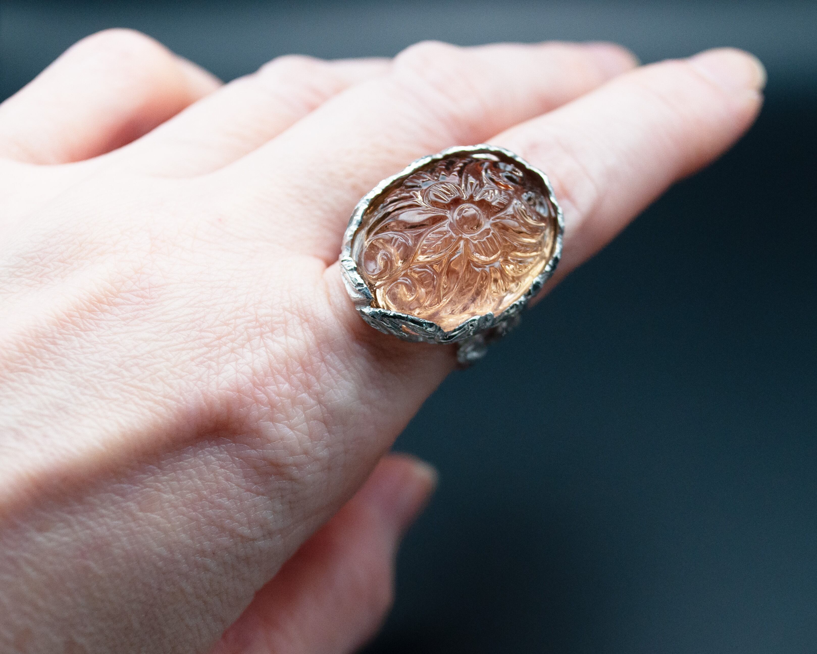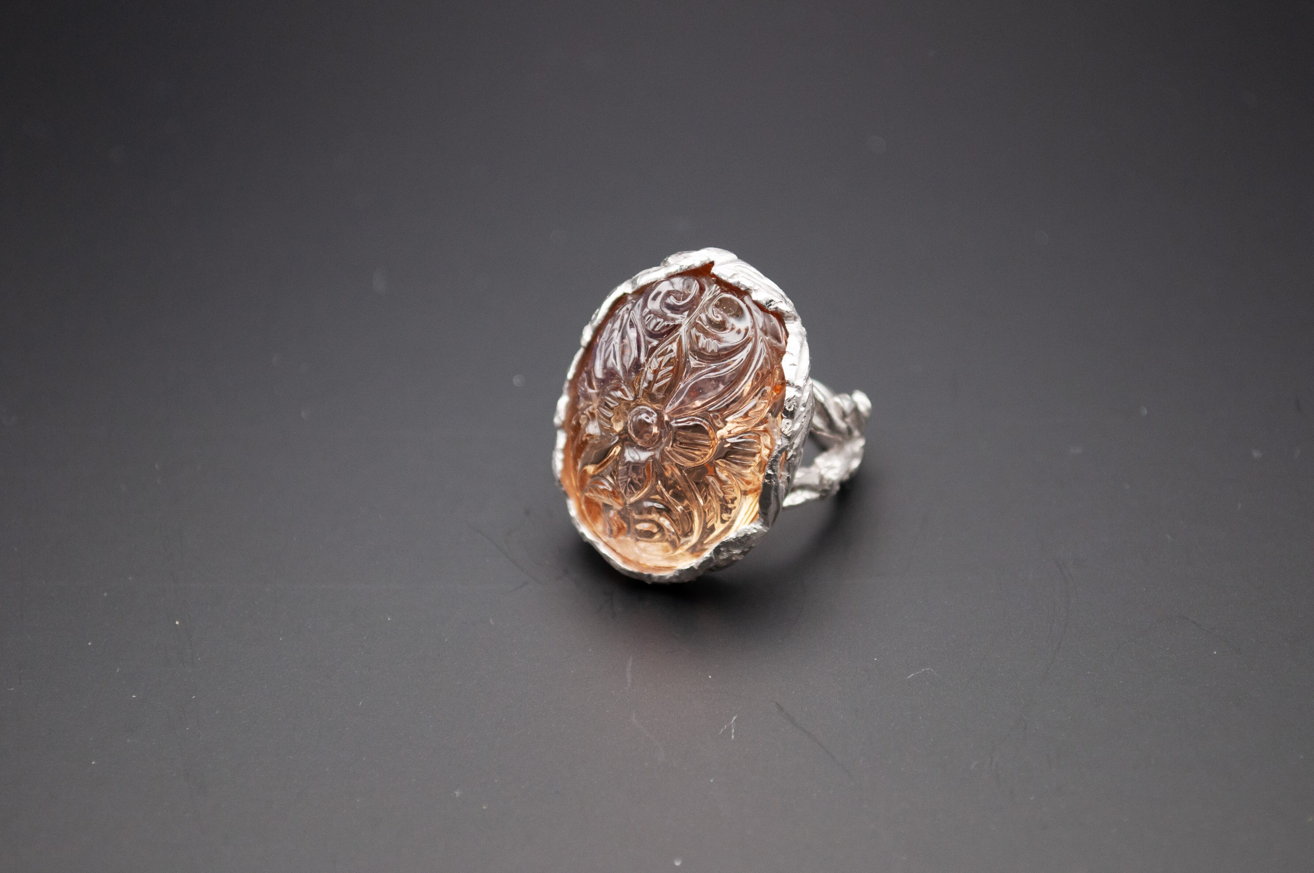 美しい大きなアメトリンのカーヴィングリング