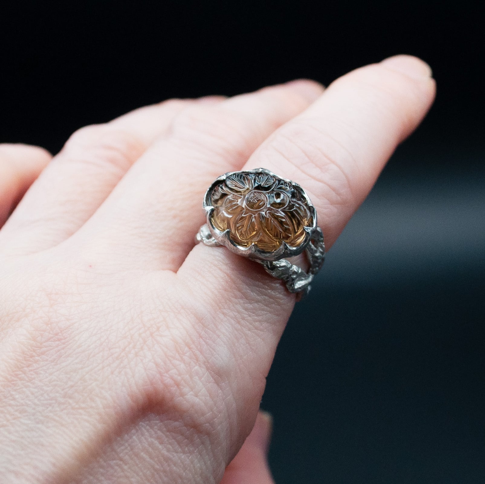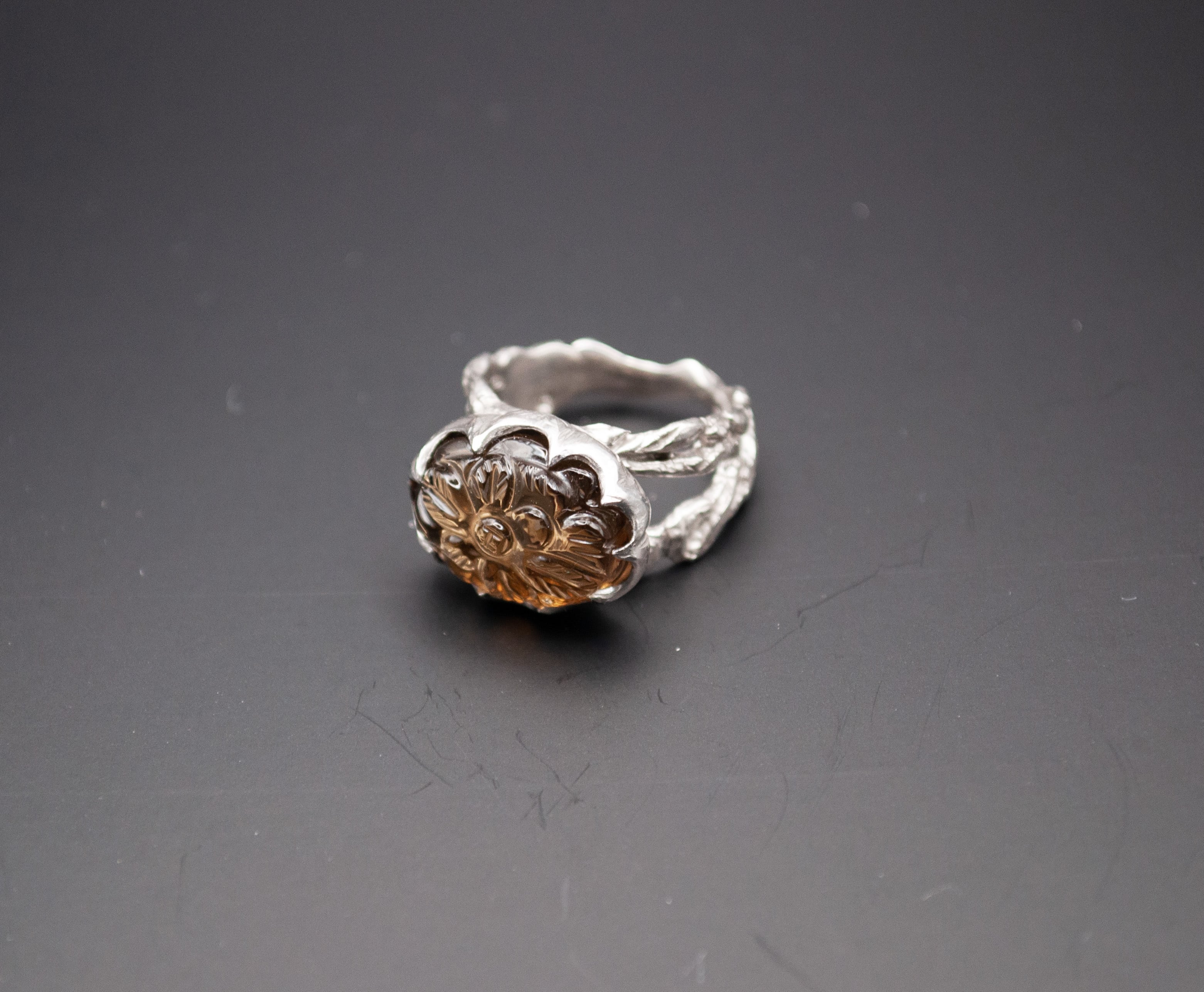 カーヴィングスモーキークォーツリング